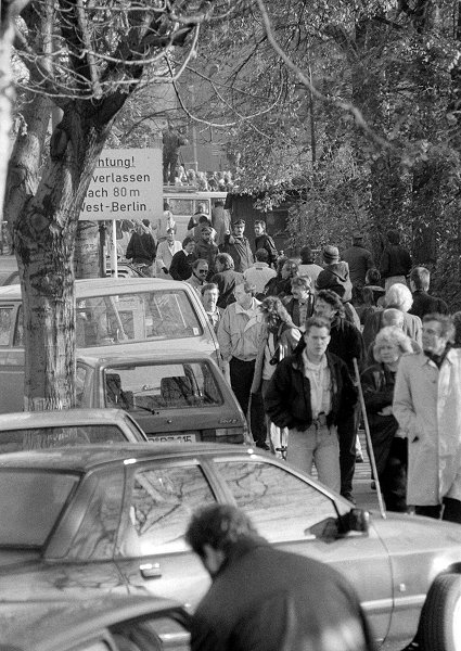 Blick in die Invalidenstraße Richtung Osten zum Grenzübergang, 10.11.1989.