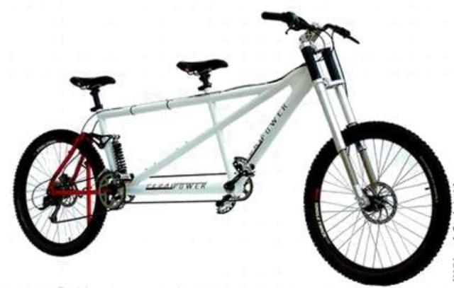 | | Bergwerk (D) "Sauss und Brauss". Fully mit mittleren Federwegen. Hinterbaudämpfer mit sehr geringer Übersetzung. Die noch junge Firma genießt einen sehr guten Ruf. Bisher keine Erfahrungswerte mit diesem Tandem. |